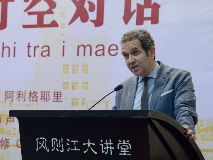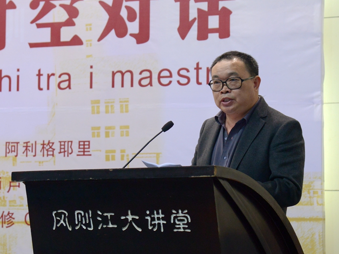 寿永明代表学校向各位嘉宾表示热烈欢迎。他表示此次大师对话是当年鲁迅对但丁跨越时空心灵对话的延续,让大家更进一步认识鲁迅与但丁文学遗产的当代价值,也将更进一步深化中意两国文化交流。