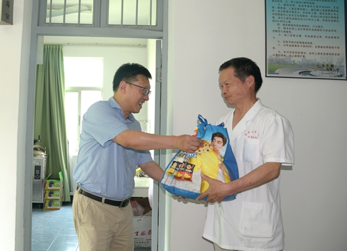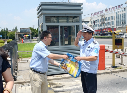 汪俊昌一行先后走访了招生办、更名办、河西3幢公寓门卫室、河西一楼餐厅、医务室、河西南大门门卫室、南山大门门卫室、南山2幢公寓门卫室,亲切慰问暑假期间依然坚守岗位的教职员工。每到一处,汪俊昌都与在岗教职员工一一握手并亲切交流,了解教职工们的工作情况,向他们表示亲切的慰问,并送上防暑用品。