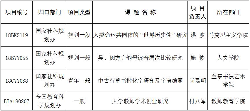 日前,2018年国家社科基金项目立项结果在国家社科网和国家教育科学网上公布,我校获批4项国家社科基金项目,项目数比去年增加1项: