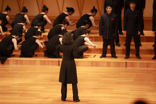 此次比赛,指挥李秀瑜老师选择了《大地行》《地球累了》参赛,其中《大地行》为原创作品《大禹颂》组曲之三,周一农词、翁持更曲。《地球累了》是委内瑞拉作曲家阿尔贝托为国际“拯救地球日”而作的当代合唱作品。