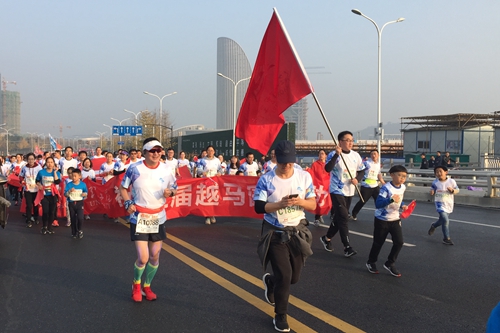 我校作为此次越马21个方阵中的第二方阵(第一方阵为“奔跑吧中国”方阵),由42个国家和地区的国际留学生、80余名教师组成。早上5点20分,我校师生就身着统一服装集体前往比赛起点——绍兴市奥体中心,7点30分,在校旗的引领下,我校运动员精神饱满,沿着风景秀丽的解放大道奋力开跑,在锻炼身心的同时,还尽情领略了古城绍兴的旖旎风光。