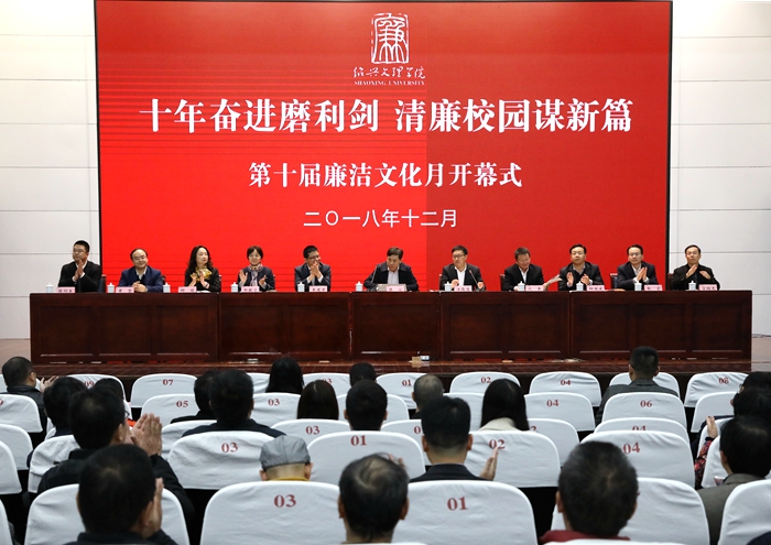 12月5日下午,以“十年奋进磨利剑,清廉校园谋新篇”为主题的学校第十届“廉洁文化月”活动在铁城科教馆报告厅举行开幕式。绍兴市委常委、纪委书记、监委主任陈欣应邀出席会议。学校党政班子成员、全校科级及以上干部、校纪委委员、各分党委(党总支)委员、二级纪委委员(纪检组成员)、特别监察员、特邀监察员、民主党派负责人出席会议。校党委书记汪俊昌、校长王建力分别主持会议,汪俊昌发表动员讲话,会上还介绍了领导班子新成员。
