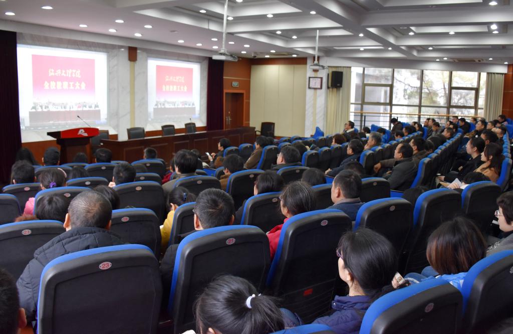 汪俊昌指出,2019年的难事大事不少。当前,更名大学、绩效工资改革等正处在重要窗口期,可谓机不可失、时不再来。在这些机遇和挑战面前就需要我们全体教师职工进一步统一思想、齐心协力,立大志向,展大胸怀,现大气象。对于这些重要工作必须聚焦聚力,攻坚克难,做到以重点突破带动全局提升。