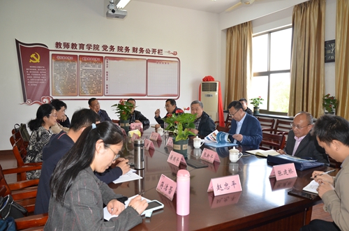 4月16日,全国教育专业学位研究生教育指导委员会专家组来校检查指导教育硕士研究生培养工作。专家组由沈阳师范大学原副校长、教指委委员李铁君教授,沈阳师范大学教育学院院长周润智教授,南京师范大学张新平教授组成。校长王建力、副校长柳国庆出席汇报会,研究生处和教师教育学院负责人及相关硕士生导师参加会议。