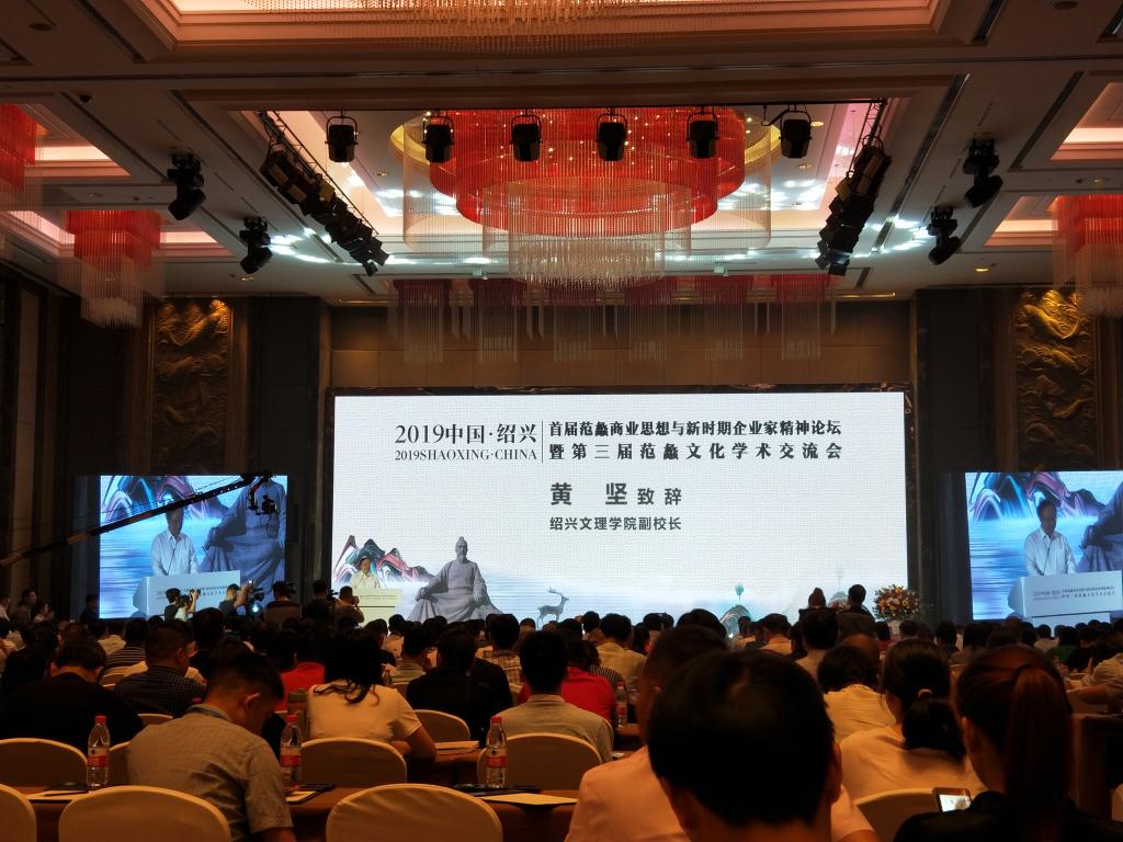 由绍兴市越商研究会筹划发起,我校和复旦大学东方管理研究院、绍兴市社会科学界联合会、绍兴职业技术学院共同联合主办的2019中国•绍兴“首届范蠡商业思想与企业家精神论坛”,5月24日在绍兴举行。浙江省社联副主席陈先春,绍兴市政协副主席冯建荣,市社联主席柳巨波,我校副校长黄坚,绍兴职业技术学院执行校长黄柏江等出席论坛,北京大学、复旦大学等知名高校教授,全国范蠡文化研究者,各省市七十余家优秀商会、行业协会会长、秘书长以及部分杰出企业家代表共500余人参加了论坛。论坛开幕式由柳巨波主持。