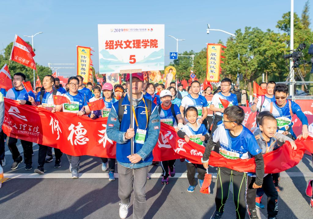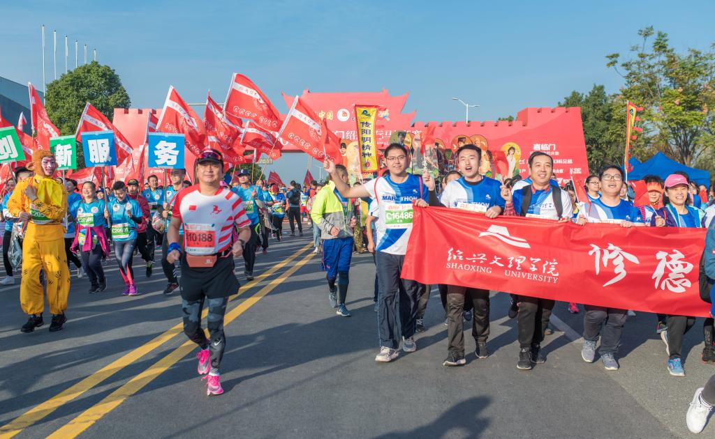 我校方阵由28个国家和地区的80名国际留学生、《千古一圣王阳明》话剧成员20人、教师代表40人组成。早上5点40分,我校师生就身着统一服装集体前往比赛起点——绍兴市奥体中心,7点30分,在校旗的引领下,我校运动员精神饱满,沿着风景秀丽的解放大道奋力开跑,在锻炼身心的同时,还尽情领略了古城绍兴的旖旎风光。