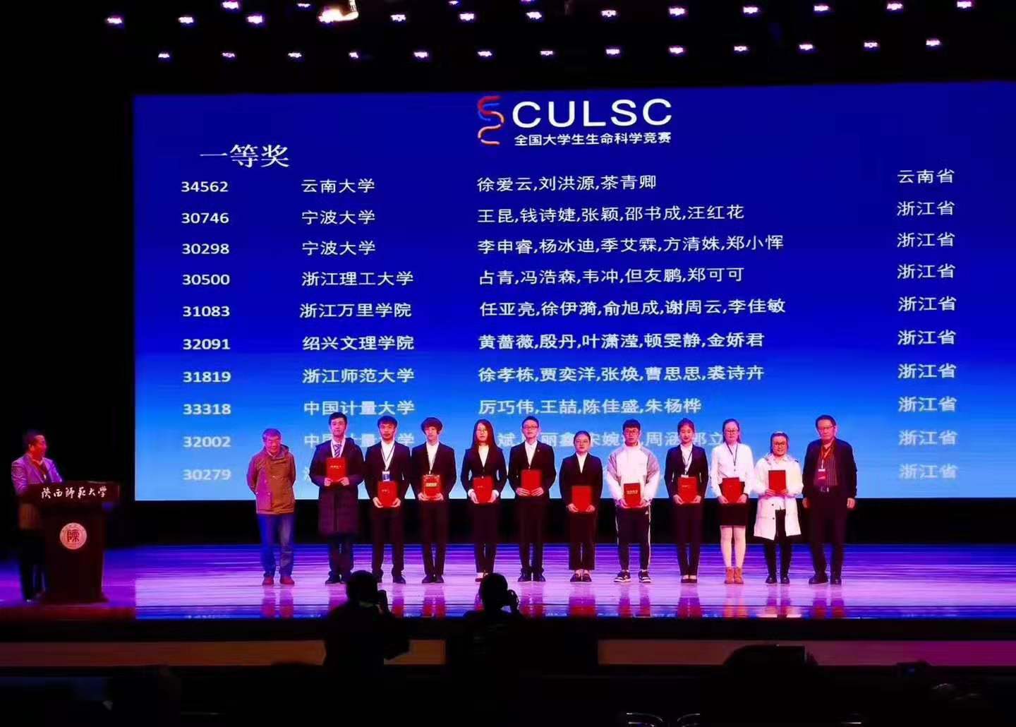 本次全国大学生生命科学竞赛共有来自全国的411所高校、4797支参赛队伍参加,经过全国各省赛专家评分及竞赛评审委员会和执委会审定,有156支队伍参加决赛答辩,共评出一等奖60项。浙江省共有17支队伍进入决赛答辩,获得一等奖9项。