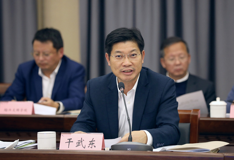 干武东在讲话中指出,全省高校深入贯彻中央和省委的部署要求,落实立德树人根本任务,坚定政治方向,加强组织领导,加大落实力度,高校思政工作在改进中强化、在创新中发展,取得了一些新进展、新成效。我省被教育部确定为全国首批“三全育人”综合改革试点省份。新华社《国内动态清样》专题刊登我省高校思政课建设情况,中央领导作出重要批示,中央电视台、《人民日报》《光明日报》等中央媒体多次报道我省高校思政课改革创新举措。概括起来,主要体现在“四个更加”,一是思想铸魂更加聚焦聚力,二是育人工作更加深入深化,三是队伍建设更加有力有效,四是维稳责任更加落地落实。就深入推进我省高校“三全育人”综合改革,干武东提出四点要求:一是高举理论旗帜,推动专业教师与思政教师齐心协力,构建全员育人工作格局;二是高扬时代旋律,推动校园生活与管理服务齐头并进,构建全程育人工作格局;三是高度整合资源,推动校内校外与网上网下齐抓共管,构建全方位育人工作格局;四是高效落实责任,推动“三全育人”综合改革任务落地见效,全面提升我省高校思政工作水平。
