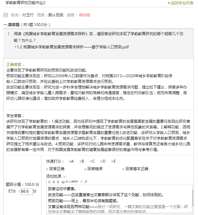 图7 学习通平台学生作业与教师批阅2