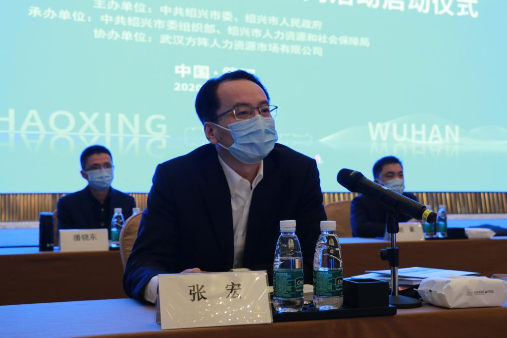 4月10日上午,武汉万达瑞华酒店,新冠肺炎疫情以来,一场特别的座谈会正在进行,这是一场由绍兴市委市政府主办,感恩武汉、保障就业,面向广大武汉高校毕业生的人才活动。绍兴以武汉为起点,面向全国开出2020春季“人才专列”。在武汉按下重启键的第一时间,怀着感恩致敬和渴求人才之心,学校由张宏副校长带队,“搭乘”今年全国第一列开进武汉的“人才专列”来到江城,并作为绍兴用人需求单位唯一代表进行现场推介。人民网同步直播,新华社、中国青年报、环球时报、荆楚网、浙江新闻客户端等媒体进行了跟踪报道。