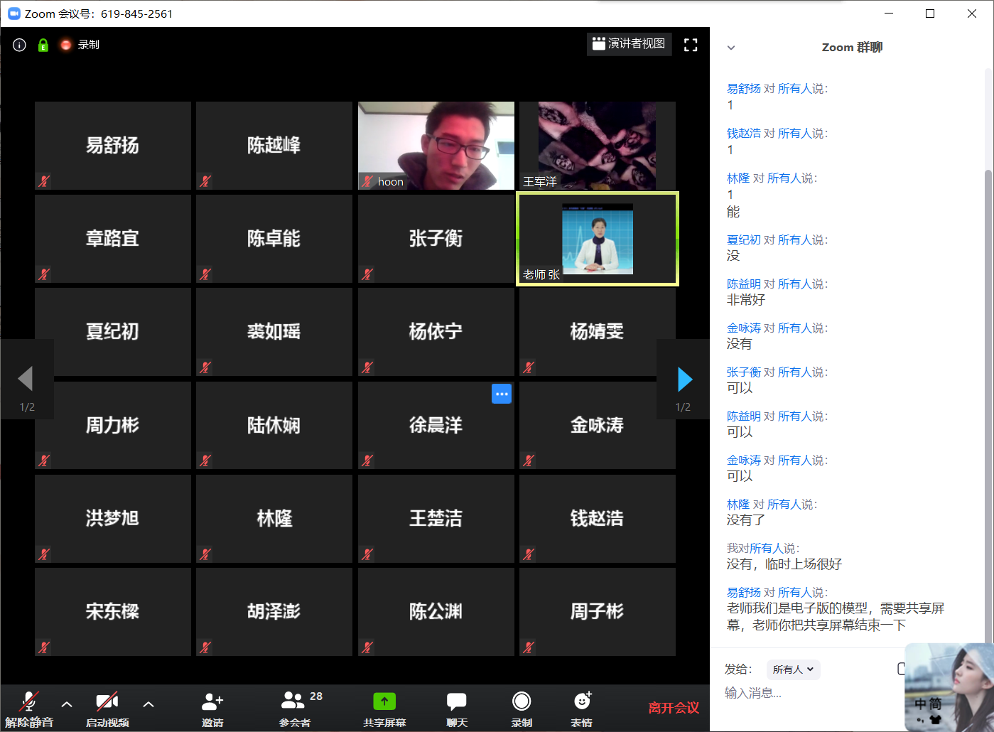 3.双平台协同是实施线上翻转课堂的优质条件  学生在超星学习通完成微课、非视频资源的自主学习,教师采用以问题为基础,任务为驱动的教学模式,通过ZOOM视频会议与学生在线进行翻转教学。通过屏幕分享,老师组织学生进行线上主题讨论、主题汇报、课程答疑、项目汇报、作业汇报、难点回顾等教学活动,通过分组任务、选人、抢答、评分、投票等功能在线进行课堂互动。利用互联网平台,打通教学与实践,建立“多空间”教学模式。