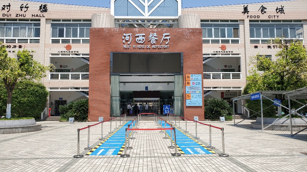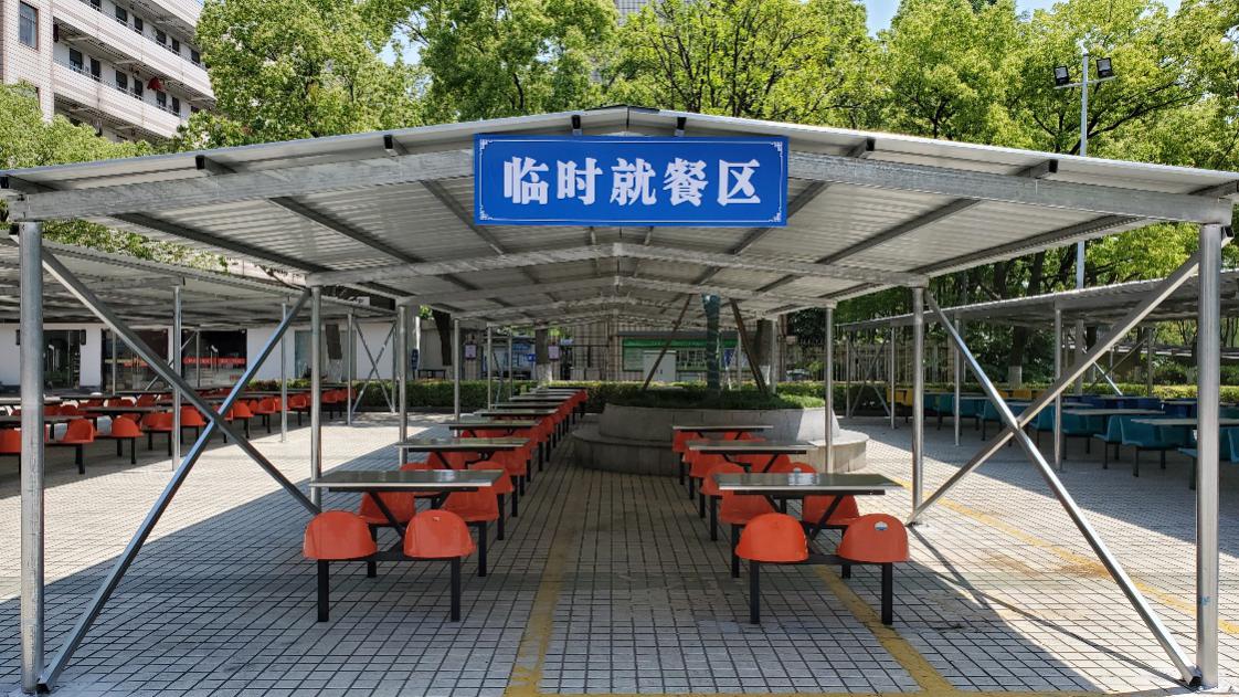 为避免人员聚集,各餐厅实行错时分散就餐,增设了打包区,采取自带餐具打包、餐厅堂食相结合的供餐模式。不仅如此,学校还在原有餐饮服务外,河西餐厅、南山餐厅门前增加了临时就餐位,缓解高峰期就餐压力,保障师生就餐需求。