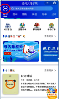 5.到达图书馆后,请利用“超星读书”左上角二维码扫描工具在门口扫码入馆。
