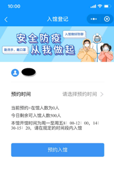 4.选择入馆时间(每次默认预约时间为180分钟)并完成入馆预约。