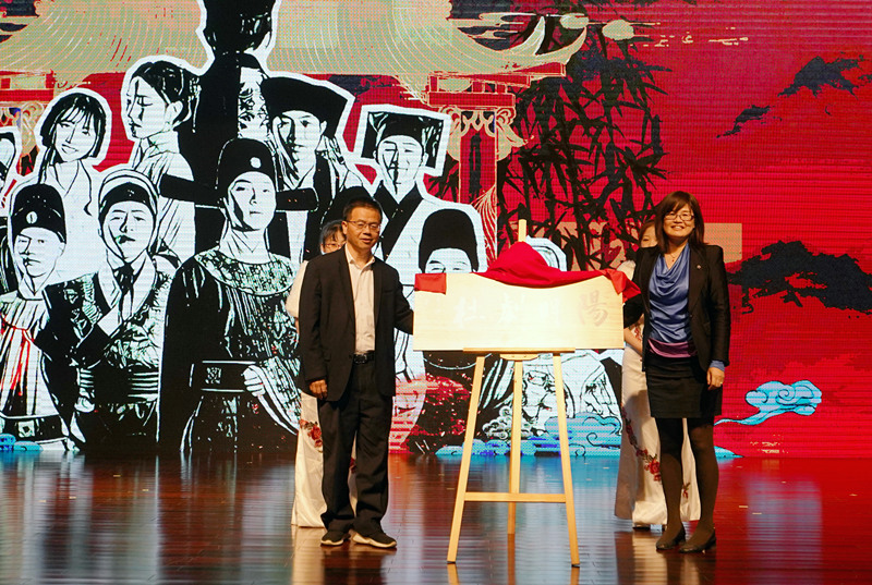 活动期间,与会代表在月明音乐楼集体观看了阳明剧社原创话剧《千古一圣王阳明》和艺术学院编排的“九声四气《咏良知》”表演。话剧演出前,学校举行了“阳明剧社”成立揭牌仪式。