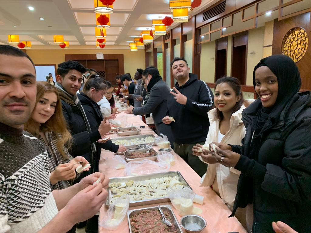 演出后的“包饺子、话团圆”环节再一次将现场气氛推向高潮。在学校领导和老师的指导和耐心解说下,留学生们互相配合,认真制作。饺子入口的那一刻,品尝到的不只是美味,更是亲自动手的快乐和中华美食的奥妙。