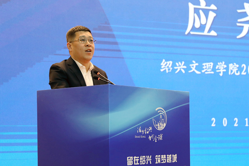 应尧刚在致辞中全面介绍了绍兴越城地理区位、人文历史、交通环境情况,描绘了产业平台、经济发展的广阔空间和安居乐业的美好前景,并向学生们发出最诚挚的邀请,真诚欢迎同学们在越城创业创新创未来,加盟越城发展,筑梦奔跑,创造美好。