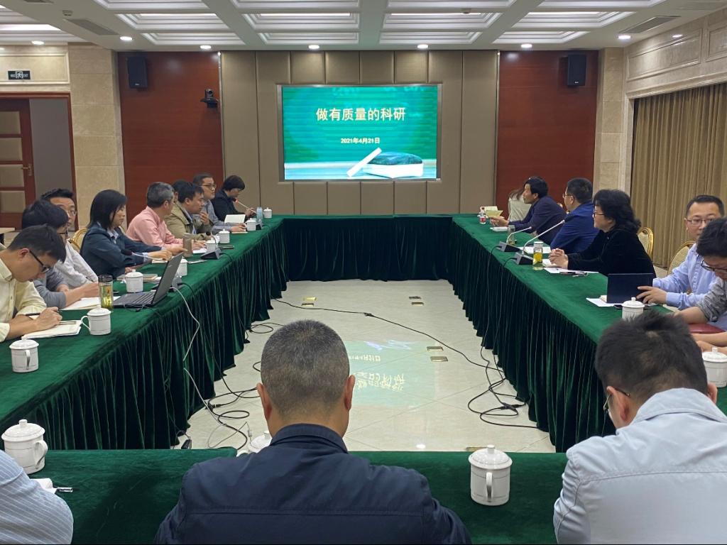 4月21日,学校在铁城科教馆一楼小会议室召开“做有质量的科研”专题科研工作会议。寿永明副校长,各自然科学类二级学院院长及科研副院长,省级、市级重点学科负责人,省级、市级及校级平台负责人、省级、市级创新团队负责人等参加了会议。