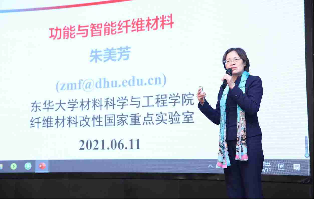 中国科学院院士、东华大学材料科学与工程学院院长朱美芳作了题为《功能与智能纤维材料》的主旨报告,就纤维材料的演变、纤维材料的制备和下一代纤维发展等前沿问题及最新研究进展作了精彩演讲。