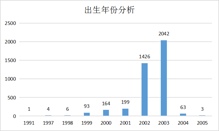 新生中2003年出生的孩子成为了主力军,共有2042位。年龄最大的是一位来自商学院的男生,出生于199109月,而另一位年龄最小的则是来自数理信息学院的男生,出生于200508月,年仅16岁哦!他们之间的岁数差竟然达到了14岁!