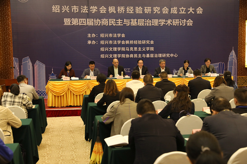 10月20日下午,绍兴市法学会枫桥经验研究会成立大会暨第四届协商民主与基层治理学术研讨会在绍兴国际大酒店举行。学校党委副书记张宏,绍兴市委政法委常务副书记、市法学会常务副会长吴海洋,市法学会专职副会长张永强,校马克思主义学院党政领导班子成员和师生代表,研究会理事等参加会议。