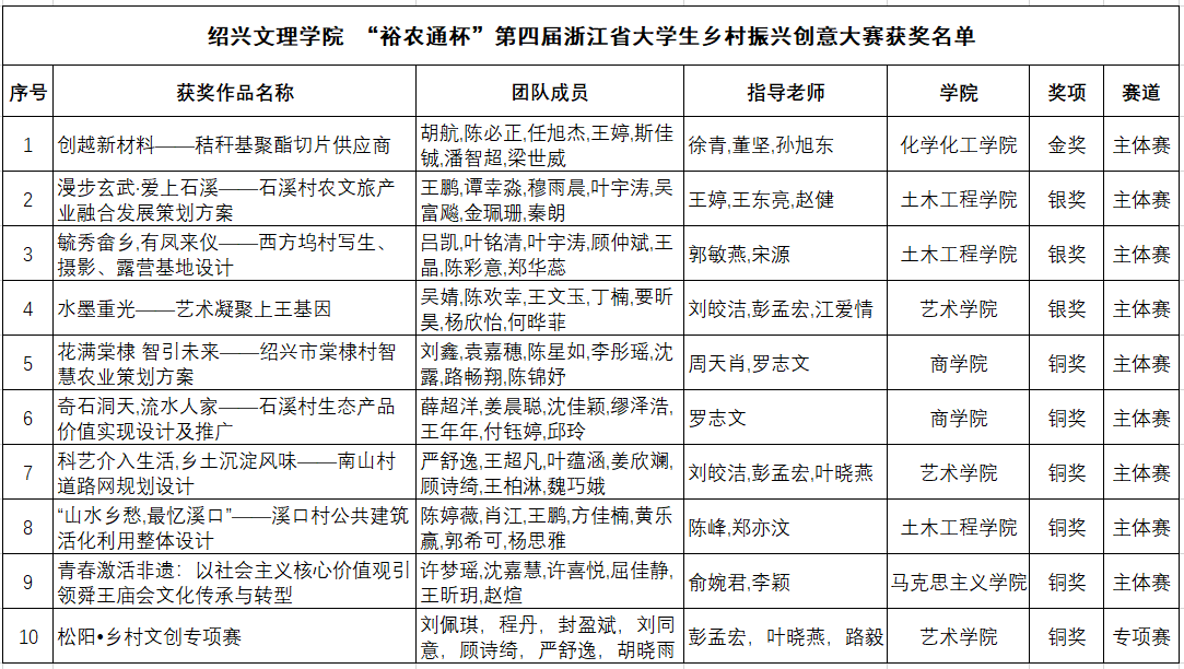 浙江省第四届“裕农通杯”大学生乡村振兴创意大赛决赛于11月18日通过线上方式成功举行。我校获主体赛金奖1项、银奖3项、铜奖5项,专项赛铜奖1项。