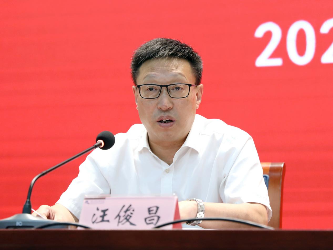 干部大会上,汪俊昌就学校深入学习贯彻省第十五次党代会精神,坚决扛起“两个先行”“五个率先”高校领头羊使命,全力推进学校高质量发展提出三点要求:一要深入学习贯彻省、市党代会精神,增强助力“两个先行”“五个率先”的政治自觉和行动自觉。要在持续学深悟透上下真功夫,在深入学习中永葆政治初心;在抓好宣传宣讲上下真功夫,在凝聚共识中强化奋进决心;在笃行实干争先上下真功夫,在助力服务中坚定发展信心。二要聚焦聚力攻坚性任务,做到以点突破带动全局提升。当前,学校正处在新的历史方位,面临新形势、新使命,需要展现新担当、新作为。实现重大目标,确保重大任务推进,要持续强化问题导向,在精准发力上狠下功夫;持续强化目标导向,在比学赶超上狠下功夫;持续强化结果评价,在务求实效上狠下功夫。全校上下要立足新形势新要求,树立强烈的标兵意识、追兵意识、危机意识,全面对照标杆,认真查找自身的不足和差距,全面审视优势、劣势和短板,着眼于通过科学的抓手、路径、载体,把自身的基础优势、资源优势和潜在优势挖掘好,转化为新的发展优势、竞争优势,把推进工作的过程作为解决问题、提升发展、赢得人心的过程,确保取得实实在在、师生满意的效果。三要加强党的全面领导和全面从严治党,为学校事业高质量发展营造良好的政治生态和政治保障。深入贯彻省、市党代会精神,加快建设特色鲜明的高水平应用型大学,关键在党,关键在干部。深入加强新时代学校党的建设,关键要突出思想铸魂,推动思想政治工作改革创新;突出固本强基,推动基层党组织全面进步全面过硬;突出变革争先,推动班子建设和干部队伍系统性重塑;突出全面从严,巩固提升巡视整改的成效;突出除险保安,交出安全与发展的高分报表。
