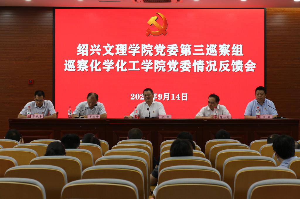 今年第二批校内巡察工作已顺利结束,经校党委同意,9月14日,各党委巡察组分别向外国语学院党委、生命科学学院党委、化学化工学院党委、兰亭书法艺术学院党委反馈了巡察情况。校党委副书记、校党委巡察工作领导小组副组长沈赤,校纪委书记、校党委巡察工作领导小组常务副组长柯羽,校党委委员、党委巡察工作领导小组成员宣绍龙分别出席反馈会并讲话,结合校党委专题会议精神,就落实反馈意见、抓好整改工作提出具体要求。党委巡察办公室有关同志、党委巡察组成员以及被巡察单位领导班子成员、科级以上干部、学科专业主任、党支部书记、教职工代表等参加反馈会。