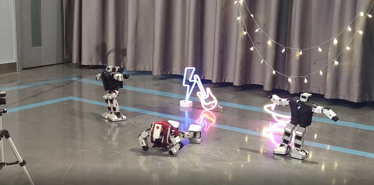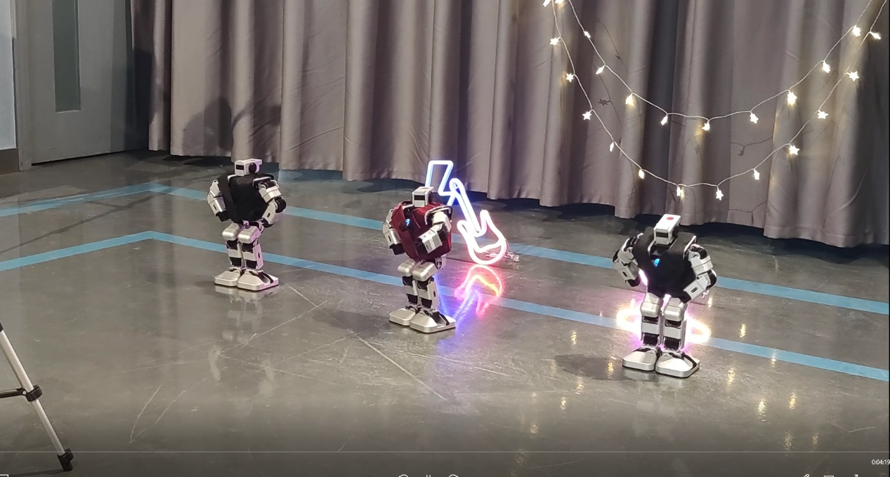 大赛强调对计算机、机器人、音乐、舞蹈、服装等多学科知识的融合运用及创意设计,备赛期间,参赛队伍在老师指导下,一边刻苦学习各种控制软件、装置、通讯协议等,熟练掌握Yanshee双足类人机器人的操作;一边通过大量观看桃李杯舞蹈比赛(国内舞蹈专业顶级赛事)作品等视频,在头脑中积累舞蹈素材,为参赛作品的准备与研发打好基础。经过大家集体讨论研究出作品雏形,再从音乐选择、音乐效果、动作设计、舞蹈美感、整体效果等各个方面根据指导老师建议不断完善和打磨参赛作品。