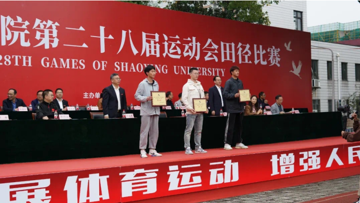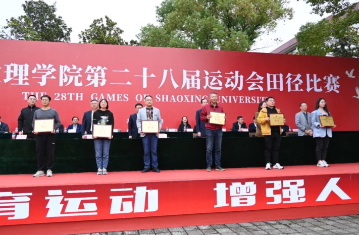 校领导为获奖代表队颁发奖牌。外国语学院、商学院、土木工程学院、数理信息学院、纺织服装学院、马克思主义学院获精神文明奖;数理信息学院分工会、商学院分工会、附属医院分工会、土木工程学院分工会、化学化工学院分工会、艺术学院分工会获教工组团体前六名;体教221班、体教222班、体教212班获学生团体比赛乙组前三名;元培学院、上虞分院、土木工程学院、生命科学学院、机械与电气工程学院、数理信息学院、商学院、医学院获学生团体比赛甲组前八名。