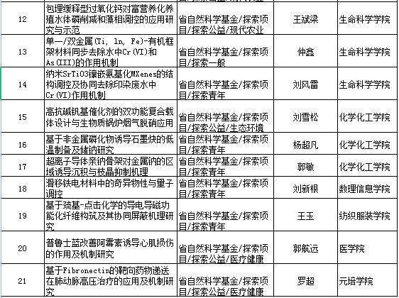 我校获批21项中,省自然科学基金/杰出青年项目1项,重点项目2项。分别是:由机械与电气工程学院吴宗大老师主持申报的《面向个性化信息服务的用户隐私保护语义混淆方法研究》获批省自然科学基金/杰出青年项目;机械与电气工程学院刘华文老师主持申报的《个性化学习数据的关键挖掘技术研究》获批省自然科学基金/重点项目;由土木工程学院沙鹏老师主持申报的《复杂艰险山区抽蓄电站工程岩体原位力学特性与主动加固方法研究》获批联合基金/华东勘测设计研究院/重点项目。这是我校首次获批省自然科学基金全额资助的杰出青年项目,也是首次同年获批省自然科学基金杰出青年项目与重点项目。