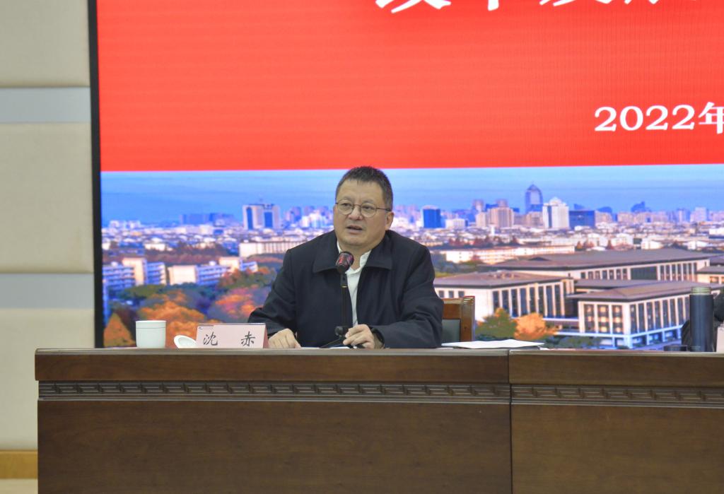12月8日下午,学校在图书馆一楼报告厅召开校地党建融合暨深度参与共同富裕改革发展工作推进会。校党委副书记沈赤,校党委委员、组织部部长宣绍龙,相关职能部门负责人和全体二级党组织书记参加会议,会议由宣绍龙主持。