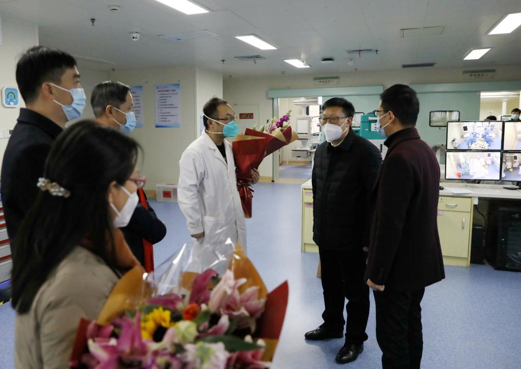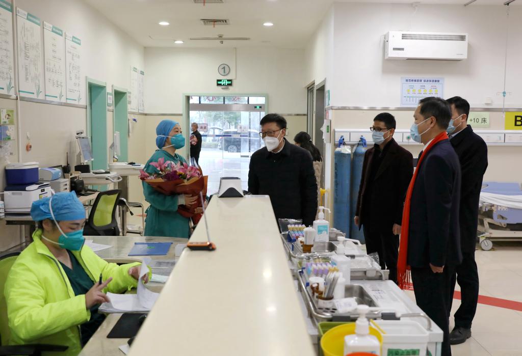 在附属医院(绍兴市新冠肺炎救治定点医院),汪俊昌走访慰问了在急诊处、ICU病房及呼吸病区辛勤忙碌的医护人员。他表示,广大附医人始终坚守在维护群众生命安全的最前线,为本市医疗卫生事业做出了积极的贡献。他向医护人员致以诚挚问候和崇高敬意,并鼓励大家再接再厉,共克时艰,不断做出新的贡献。