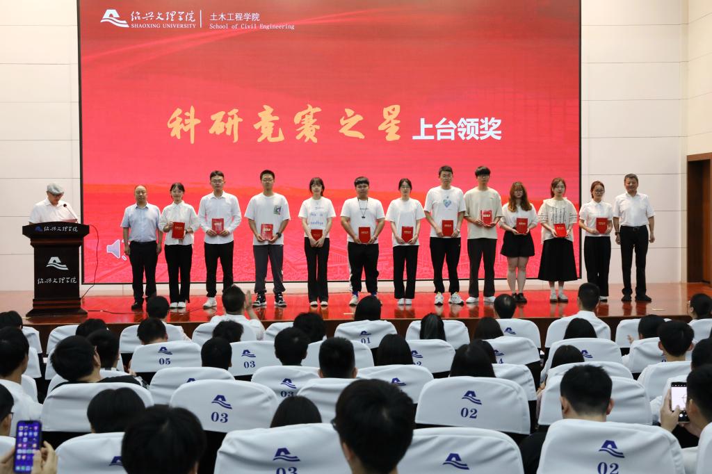 赵建明和李月红、沈赤、陈均土为获奖学生颁奖。土木工程191班谭幸淼等90多名学生分获“励志成才之星”“考研学习之星”“科研竞赛之星”“创新创业之星”“体育运动之星”及“文明寝室之星”等奖项。