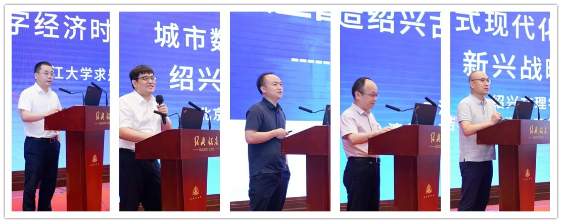 主旨报告环节,潘士远、徐苏涛、唐科伟、陶海青、罗昌瀚分别作题为“数字经济时代新动能——公共数据”“城市数字化基本框架与绍兴高质量战略抉择”“人工智能AI与高质量发展”“打造绍兴古城数字化文创产业的思路与策略”“中国式现代化进程中的绍兴经验:新兴战略性产业的视角”的主题报告。