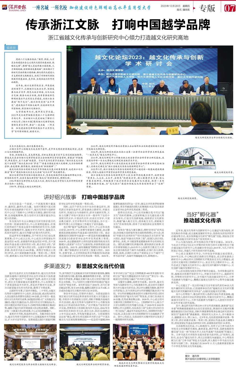 【一座名城一所名校】传承浙江文脉 打响中国越学品牌 浙江省越文化传承与创新研究中心倾力打造越文化研究高地