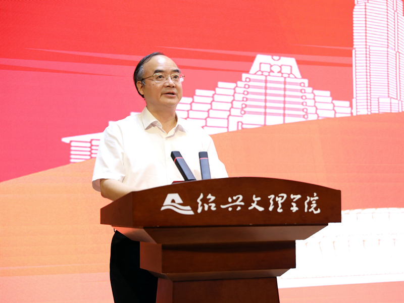 7月4日,绍兴市大中小学思想政治教育一体化优秀课例(案例)展示会暨第一批思政课骨干教师研修活动在风则江大讲堂开幕。绍兴市教育局党委委员、二级调研员马成永,校党委副书记黄坚,校党委委员、宣传部长宋浩成等出席活动。市教育局政治处主任王泽权主持开幕式。