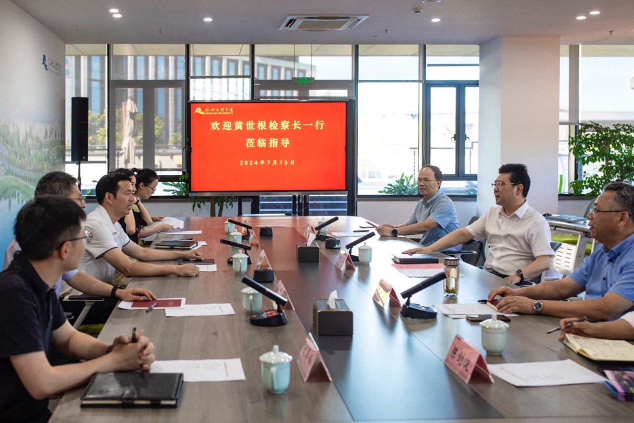 7月16日下午,市检察院党组书记、检察长黄世根一行来校走访调研,市检察院副检察长谢剑,校党委书记崔凤军、副校长柳国庆等陪同参加。