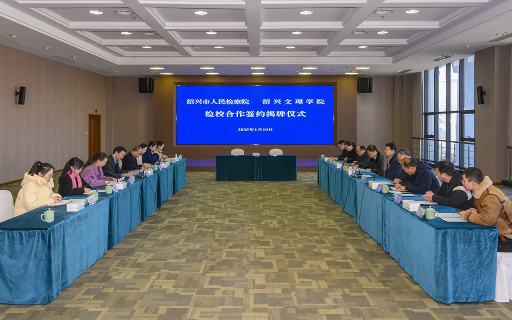 1月10日上午,学校与绍兴市人民检察院检校合作签约揭牌仪式在市人民检察院举行。校党委书记崔凤军、市人民检察院检察长黄世根、副校长柳国庆等出席仪式。市人民检察院副检察长李佑喜主持仪式。