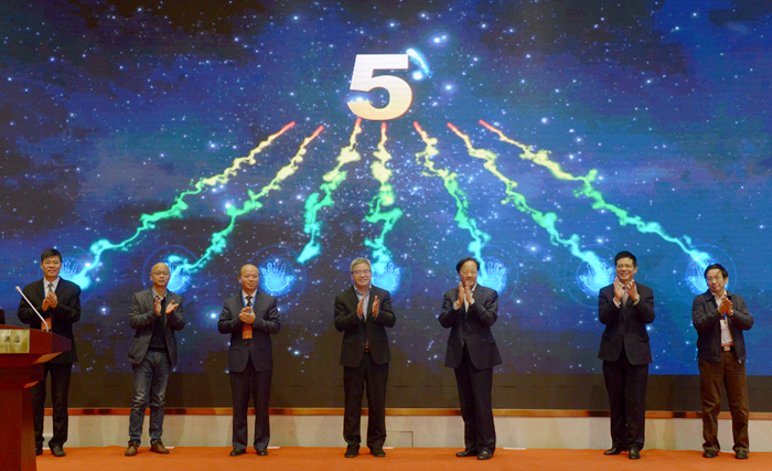 李华、何加顺、王建力、浙江理工大学校长陈文兴、中国纺织工程学会副会长龚进礼、中国纺织科学研究院总工程师黄庆、市体育局局长吴海明共同为“运动休闲+”纺织产业技术创新战略联盟成立揭幕。