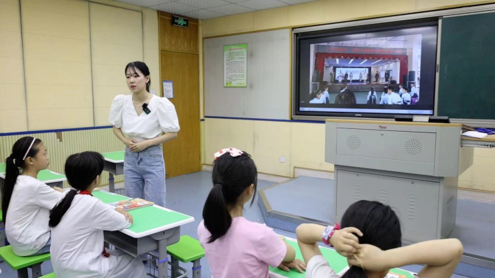结合以上典籍,大学生们创设4个教学场景,带领中小学生“穿越时空”,通过经典诵读、情景演绎、诗歌传唱等方式跨时空对话四位作者的教学形式,大中小学生共同研学,“大手拉小手”一起感悟历代对虞舜精神的歌颂与传承。