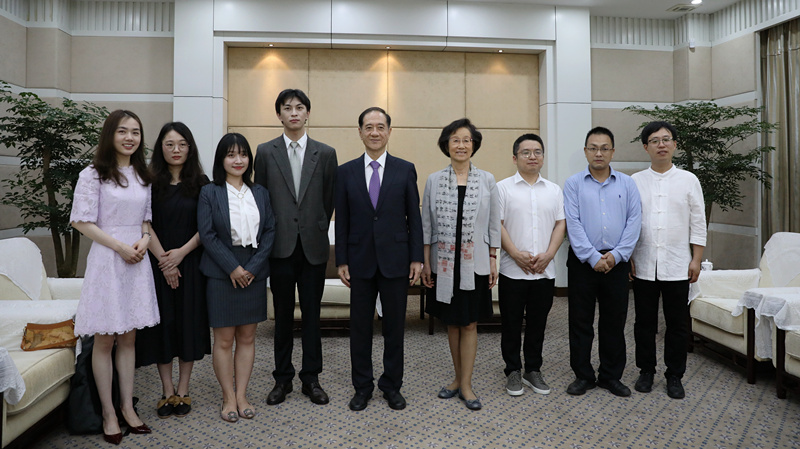 颁奖典礼之前,韩启德院士和袁明教授在铁城科教馆二楼接待室亲切接见了获奖学生及历年部分获奖代表。