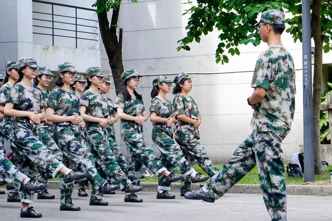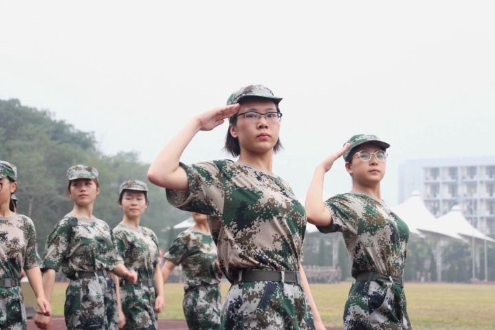 飒爽英姿军装挺,铿锵步履风采展。9月2日军训开营以来,灼热的太阳下,整齐洪亮的口号声、铿锵有力的踏步声、此起彼伏的歌声、遍布在校园的每一支军训队伍之中。参训的同学们头戴军帽、抬头挺胸、双眼目视前方流露出刚毅与顽强,身穿迷彩绿军装,面孔上满是专注认真,眉头紧锁、严肃庄重,初具军人威严。