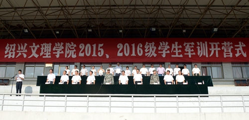 校党委书记汪俊昌,校长王建力,2015、2016级学生军训团团长、浙江陆军预备役师步兵二团参谋长赵灵刚中校,浙江陆军预备役师军训督导组成员、师司令部作训参谋徐涛中校,校党委副书记唐和祥,校党委副书记沈赤,副校长华小洋,副校长杨大明,副校长寿永明,军训团参谋长、校学工部相关负责人,校军训领导小组全体成员以及全体承训教官出席开营式。仪式由校党委委员、宣传部部长陈均土主持。