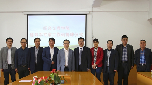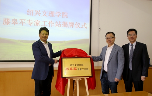 仪式现场,沈赤、胡学建一起为滕皋军专家工作站揭牌。