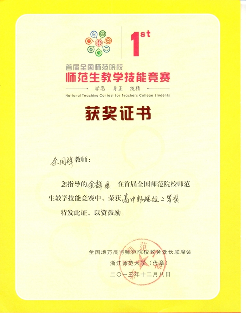 学生在全国师范技能比赛中获得二等奖