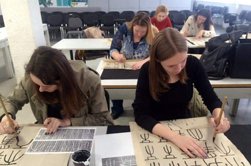 据悉,除了这种学分制的书法研习外,短期的、2至3周的交流也不少。如从2003年开始,瑞士日内瓦大学每年派书法研习团来我校研习书法,部分学员至今已来过7、8次。今年4月4日,又有一批13人团抵达我校。