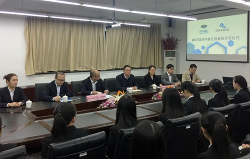 11月9日晚,学校首期“绍兴银行创新班”在经济与管理学院正式开班。绍兴银行人力资源部总经理杜国宏、经济与管理学院相关负责人参加开班仪式。