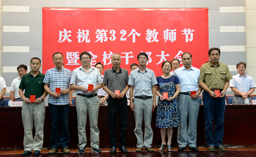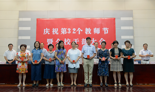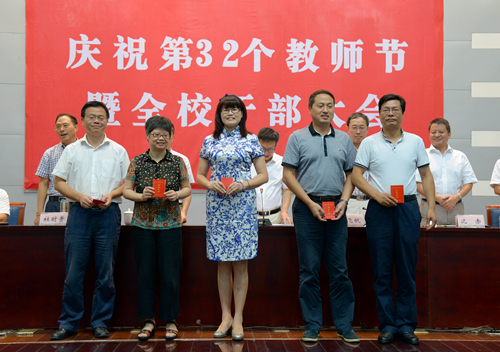 大会宣读了一年来部分获奖先进集体和个人的表彰名单,以及任教满30年的教师名单,学校领导为杨坚定等30名任教满30年教师颁发荣誉证书。会议还宣布了关于做好庆祝教师节有关工作的通知。2016年教师节学校将围绕“甘守三尺讲台,争做‘四有’老师”的主题,坚持尊师重教传统,认真组织观看央视“寻找最美教师”颁奖典礼、教学名师教坛新秀茶话会、新引进教工座谈会、博士代表座谈会、走访慰问离退休老领导和部分困难教师等活动。