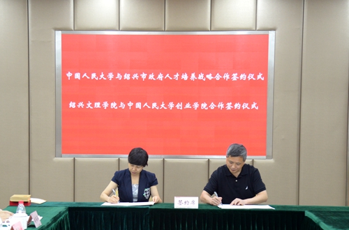 据悉,此次合作是在绍兴市政府的推动下,结合中国人民大学创业学院和我校的特长,在立足绍兴地区产业情况和科技发展情况下展开的合作。本着“资源共享、互惠互利、战略联盟、长远发展”的原则,我校与中国人民大学在合作设立培训基地的基础上,将共建创新创业教育课程体系、导师队伍,组织各类创新创业活动,两校充分利用各方的资源优势,共同推动创新创业工作的开展。